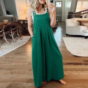 ✅Material: Wide Leg Jumpsuits For Women Is Made Of Linen, Which Is Soft, Stretchy.